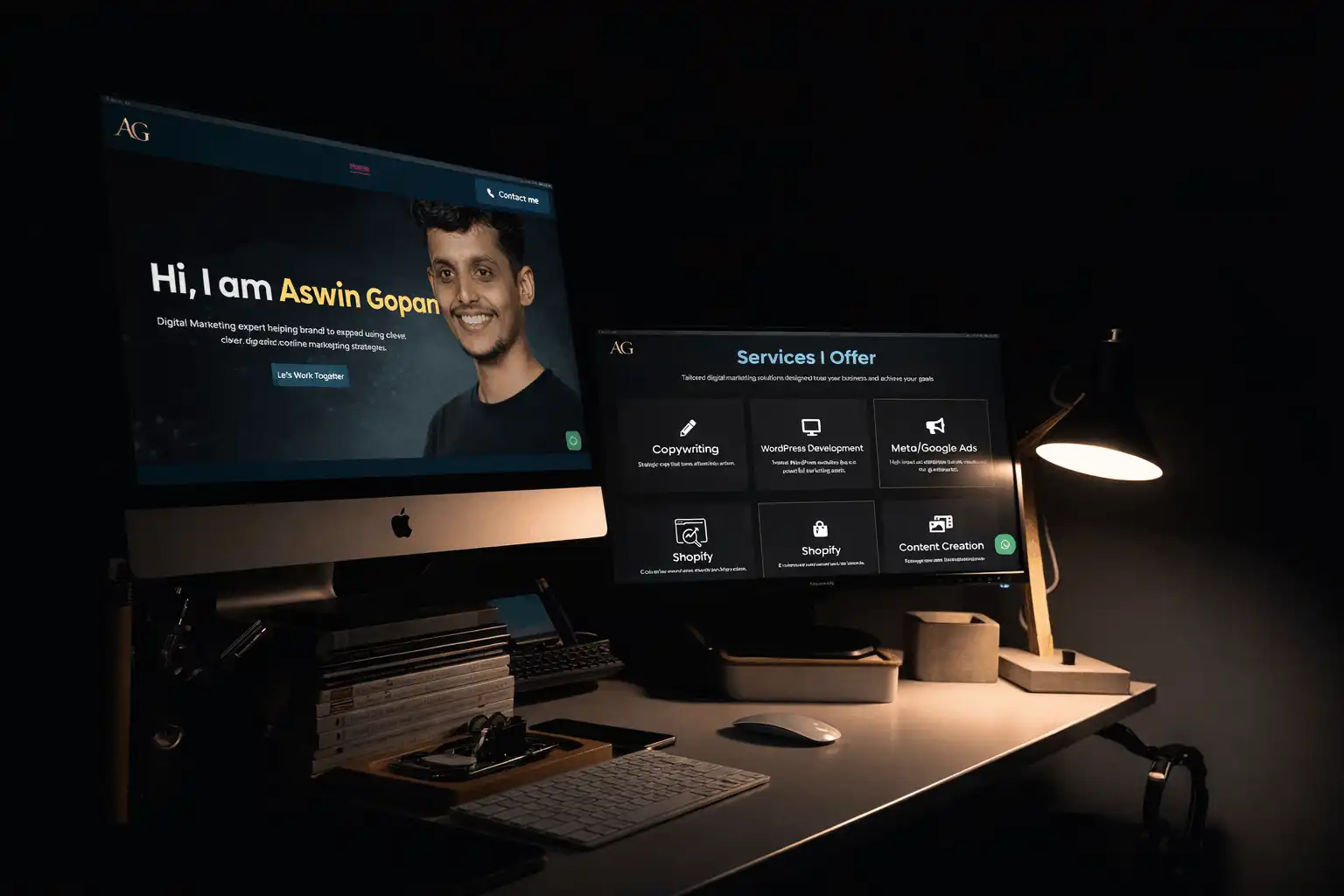 Aswin Gopan provides comprehensive digital marketing solutions that are suited to corporate objectives. SEO, copywriting, content production, Shopify and WordPress website development, and Meta & Google Ads management are among the services he offers. Every service is carefully crafted to increase visibility, attract targeted traffic, and turn viewers into clients.